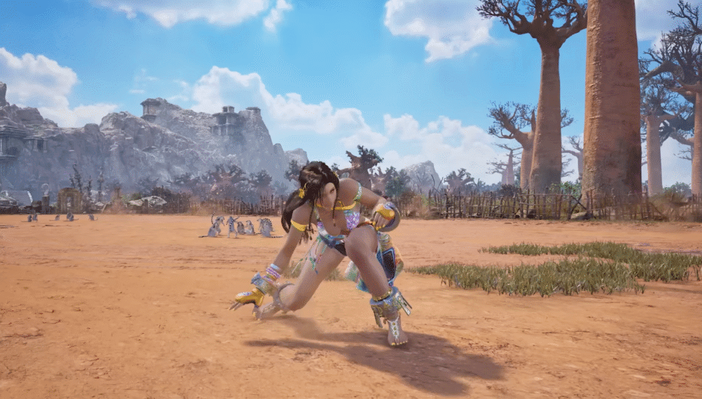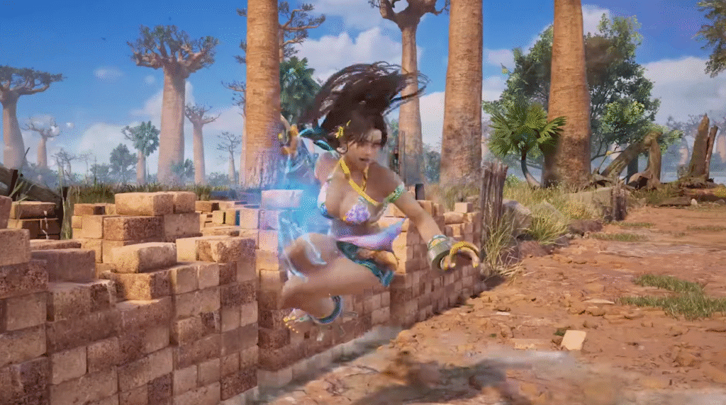 One of Miary Zo’s defining gameplay elements is her rare high crush stance. Unlike most characters, this stance allows her to evade and counter attacks aimed at the upper and middle body, which makes her a formidable choice against aggressive fighters who rely on standard rushdown strategies. The trailer clearly shows her shifting into a posture that neutralizes incoming strikes, creating punishing opportunities for counters. Fans are already theorizing about mix-up possibilities that stem from this stance, and early gameplay breakdowns hint that she can flow from evasion into aggressive sequences seamlessly, turning defensive moments into high-damage opportunities.